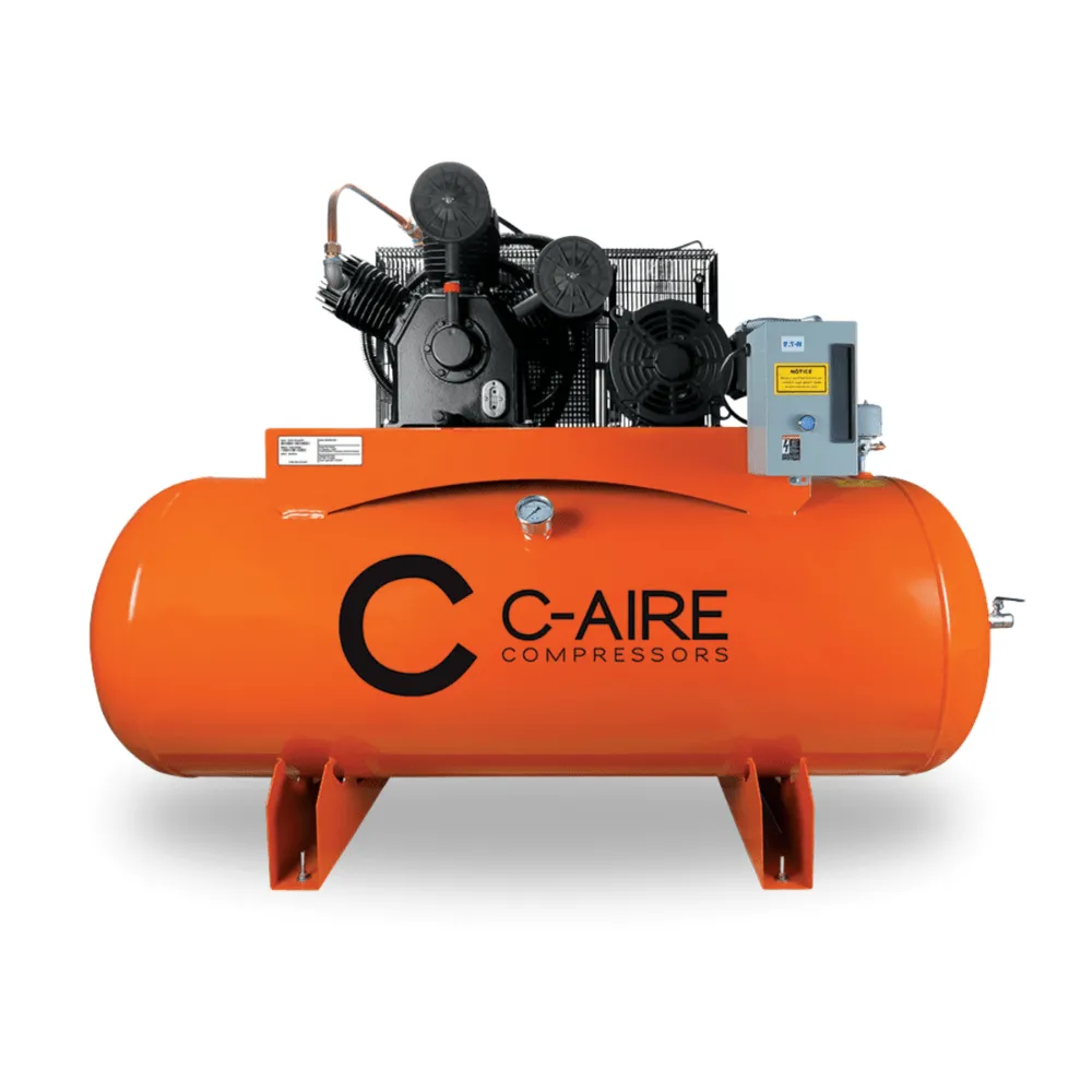 - Two-cylinder cast iron pump operating at 885 RPM delivers exceptional 16.98 ACFM at 175 PSI for maximum efficiency